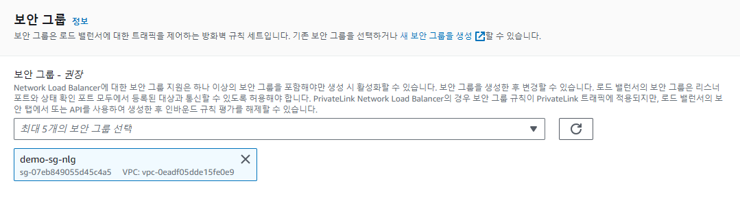 방금 생성한 보안 그룹을 로드밸런서 보안 그룹으로 설정한다.
