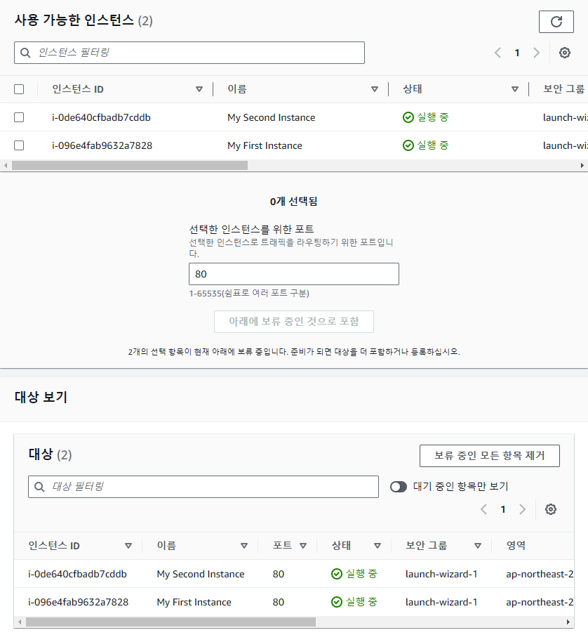 대상 인스턴스를 선택하고 대상 그룹을 생성한다.