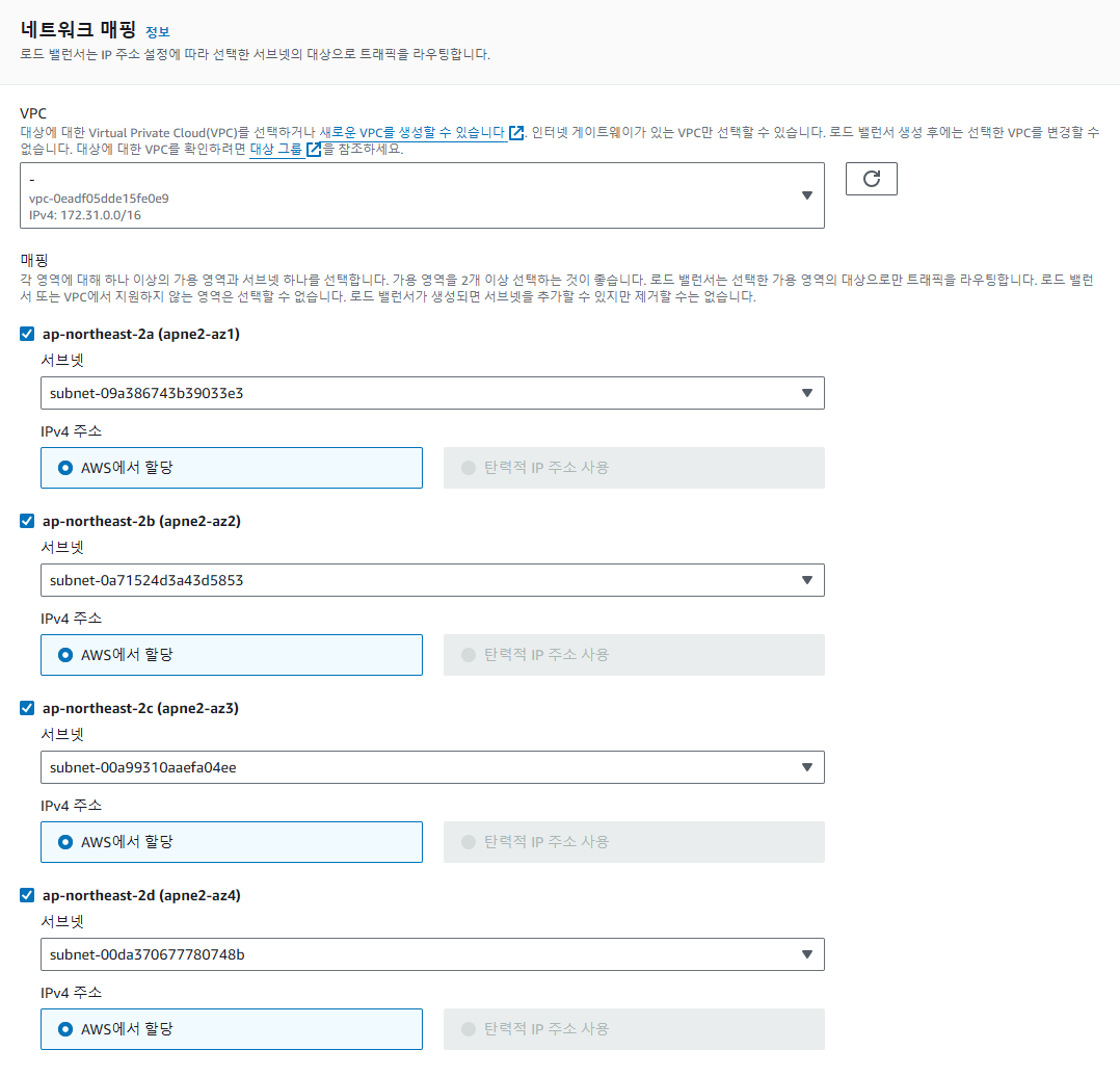 트래픽을 라우팅할 VPC와 가용 영역을 선택한다.