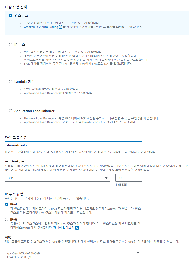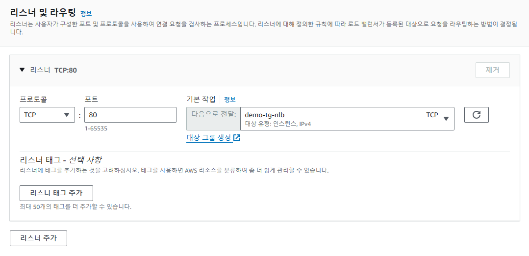 NLB를 사용할 것이기 때문에 프로토콜은 TCP로 설정한다.