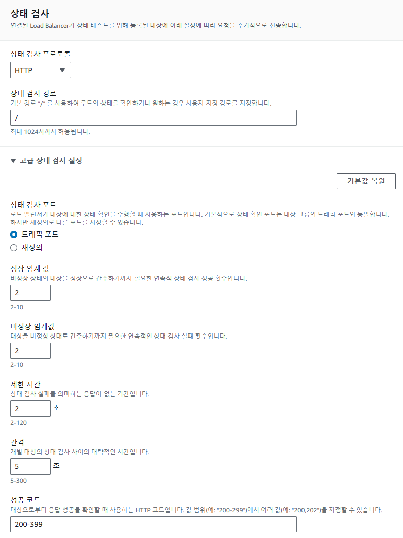 EC2 인스턴스에서 실행되고 있는 HTTP 애플리케이션이 있기 때문에 Health check는 HTTP프로토콜을 사용한다.
