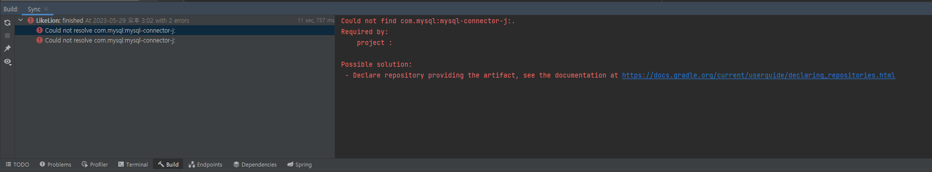 com.mysql:mysql-connector-j 를 찾을 수 없음